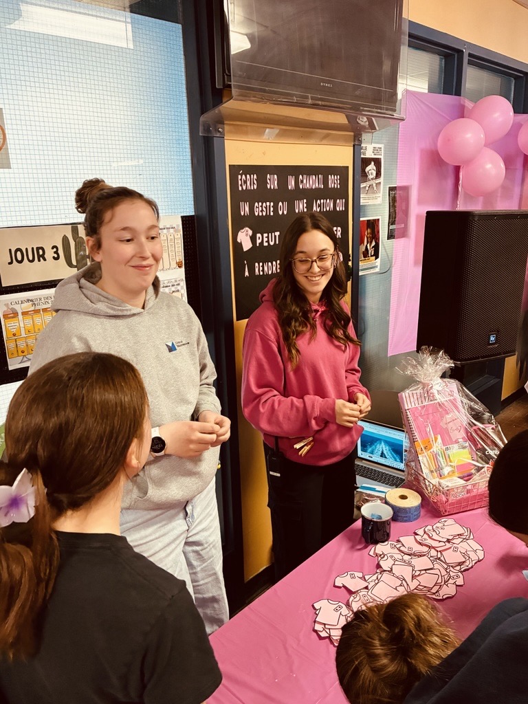 Du 23 au 27 février 2026 s’est tenue à l’école la Semaine contre l’intimidation. Des organismes sont venus sensibiliser les élèves à cette problématique. En plus de porter le chandail rose, plusieurs activités ont eu lieu sur l’heure du dîner. Par exemple :